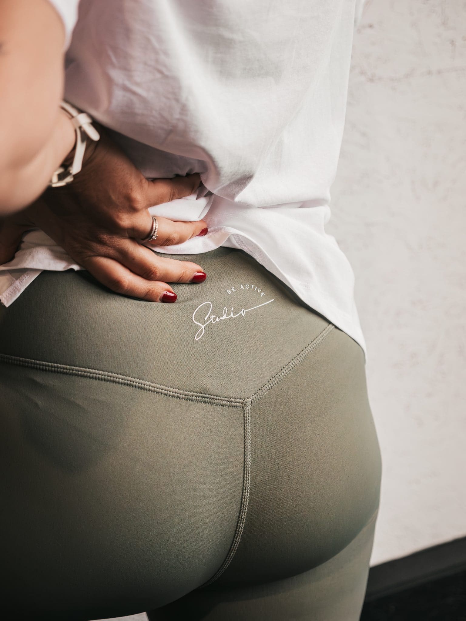 - Logo Studio Be Active : Identité de la marque avec le logo STUDIO BE ACTIVE placé discrètement à l’arrière du legging.
